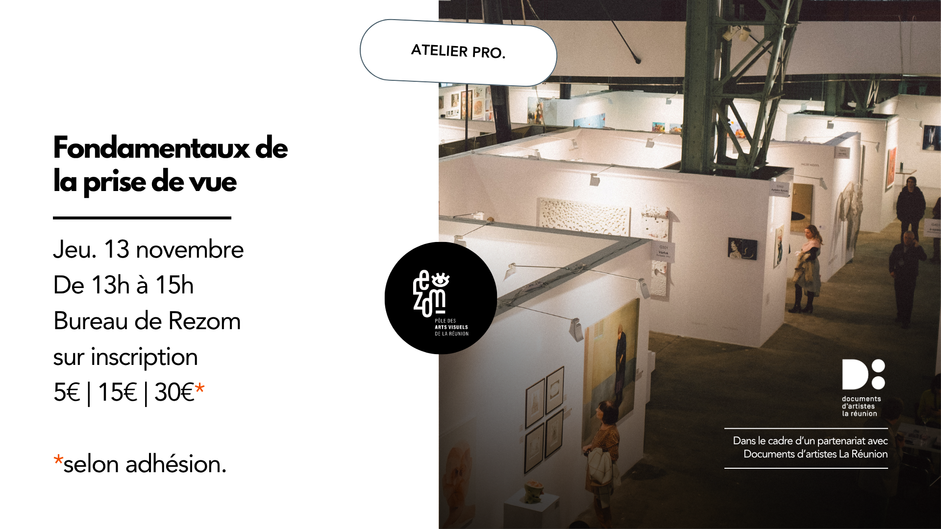Atelier Fondamentaux de la prise de vue avec Documents d’artistes La Réunion
