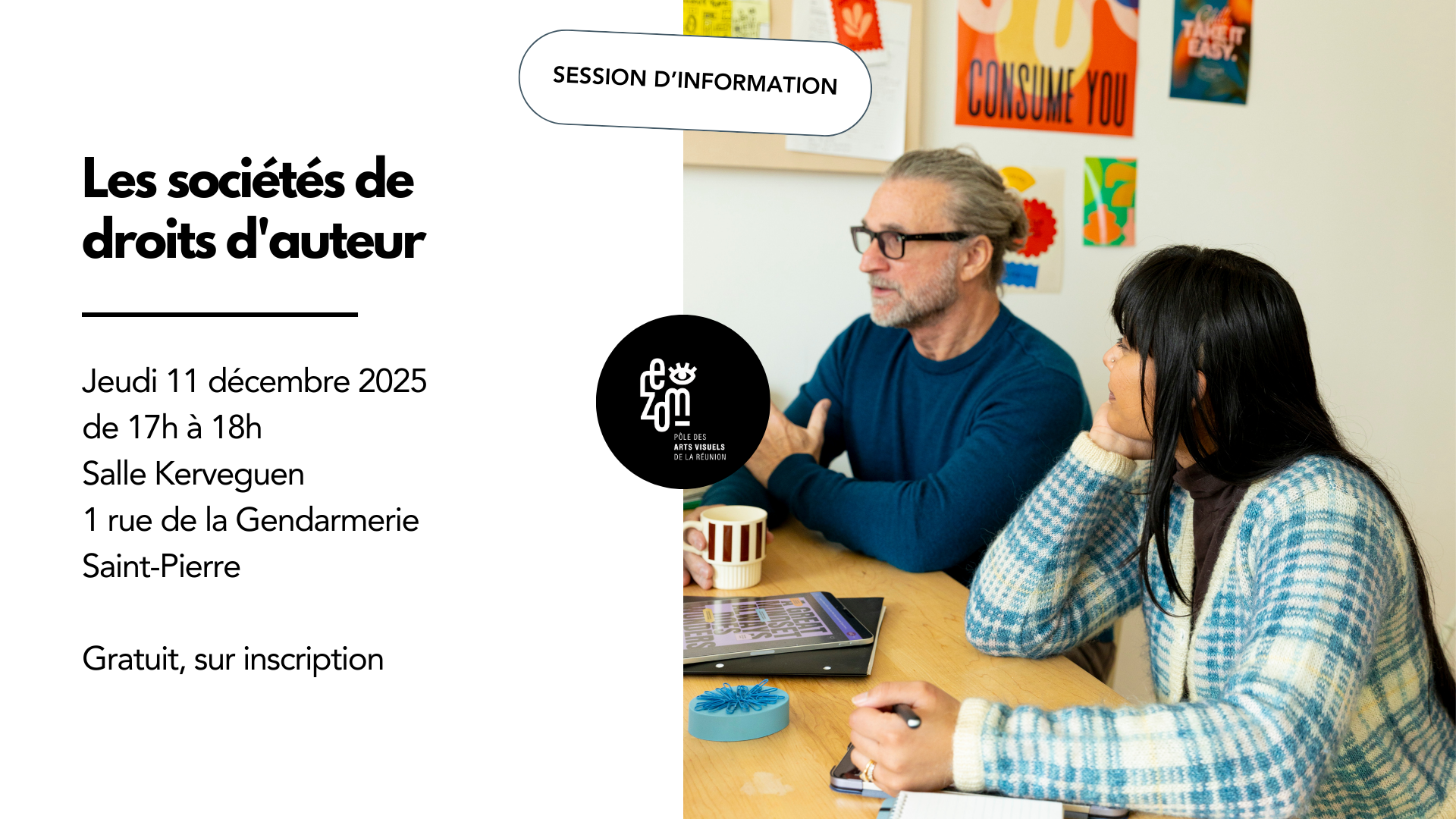 Objectif de la session d'information Animée par Guillaume Clément, cette formation pratique a pour objectif de présenter aux structures et acteur·rices des arts visuels de La Réunion l’actualité, le fonctionnement et les missions des principales sociétés de perception et de répartition des droits (SPRD). Elle a pour but de permettre aux professionnel·les accompagnant les artistes, […]